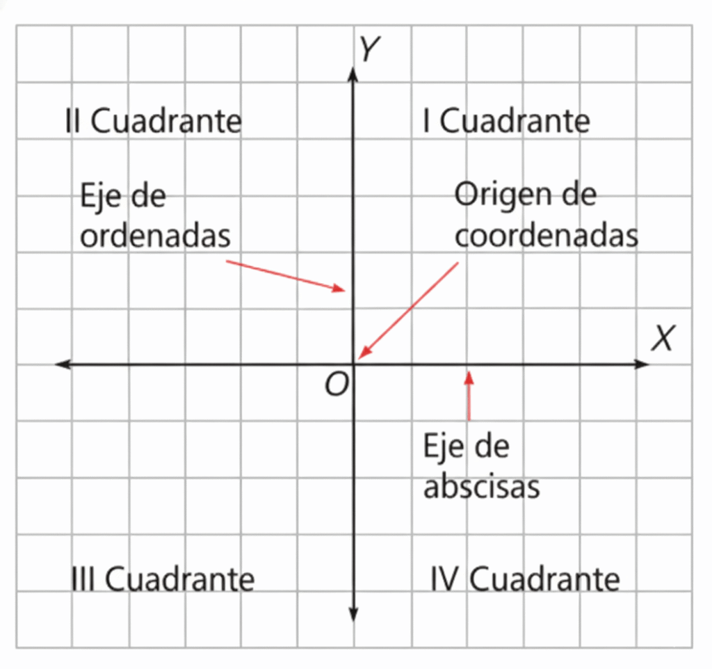El punto donde se cruzan ambos ejes se llama origen y se representa con la coordenada (0, 0).