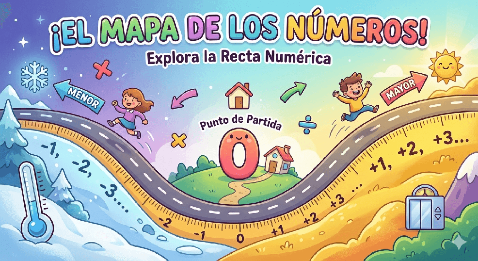 Hoy vamos a descubrir la Recta Numérica, que es básicamente el «mapa» más importante que usarás en matemáticas. ¿Estás listo? ¡Vamos allá! 🎈