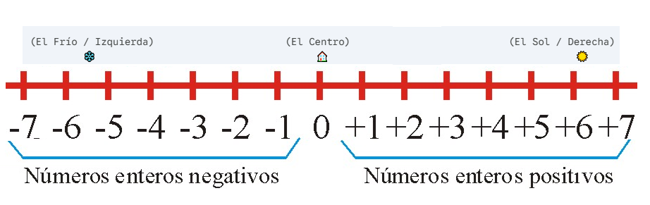 - Hacia el Frío (Izquierda): A la izquierda del 0 viven los números negativos (-1, -2, -3…). Siempre llevan un signo menos delante.